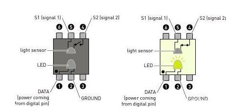 在圖片左邊國產(chǎn)光耦中,沒有電流通過 1 腳,LED 熄滅,沒有電流流過連接到 4 和 5 腳的電路。 如右圖所示,當輸入電路通電時,LED 亮起,傳感器 檢測到光線,關閉開關并啟動輸出電路中的電流。